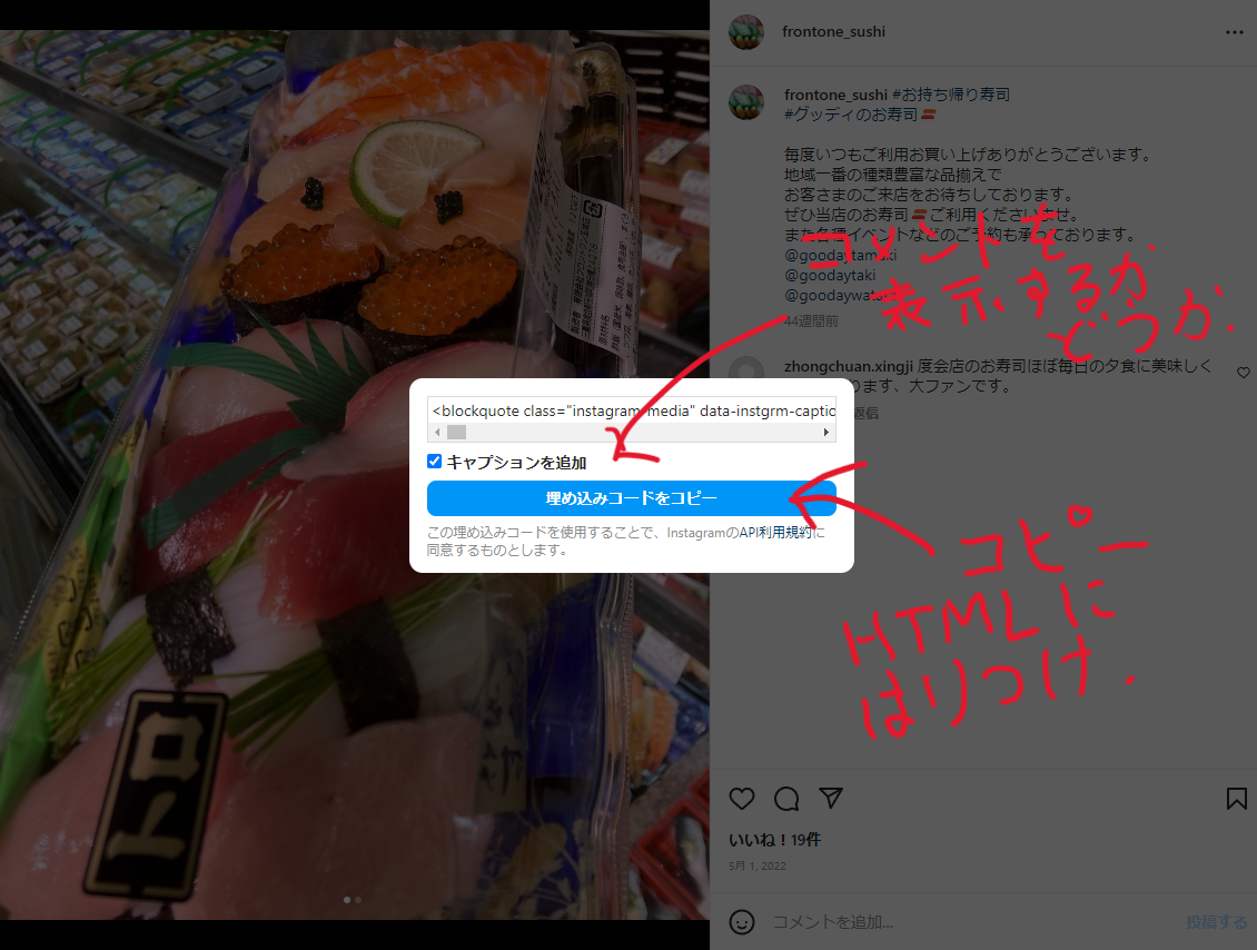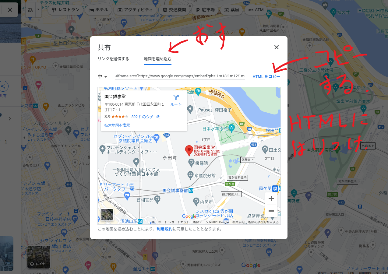 Google MapやInstagram、Twitterなどでこの機能を利用することができます。 多分ほかにもいろいろなもので埋め込みコードが提供されているので興味があったら調べてみるといいと思います。